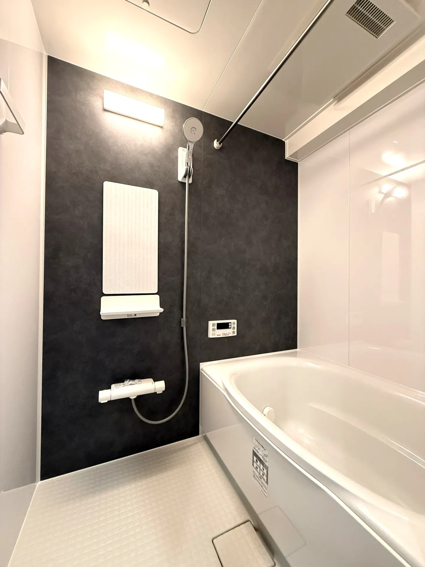 ダークパネルで締まる浴室